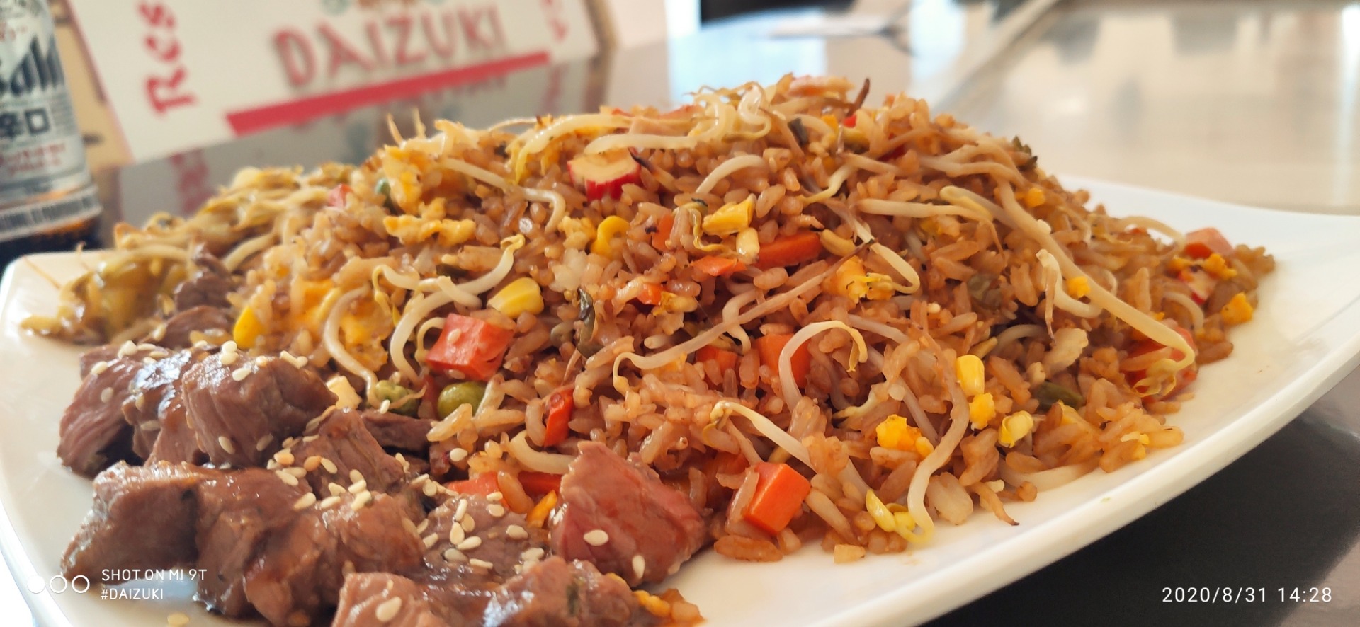Manejamos un tipo de comida japonesa llamada teppanyaki, la cual trata de cocinar en una plancha de acero acompañado de un show de cocina espectacular, manejamos un solo y delicioso plato para dos personas: *El domicilio trata de llevar la plancha a su casa o al sitio que desee ubicarla, para cualquier tipo de evento social o familiar con una semana de anticipación, mínimo para 20 personas ... Incluye:
